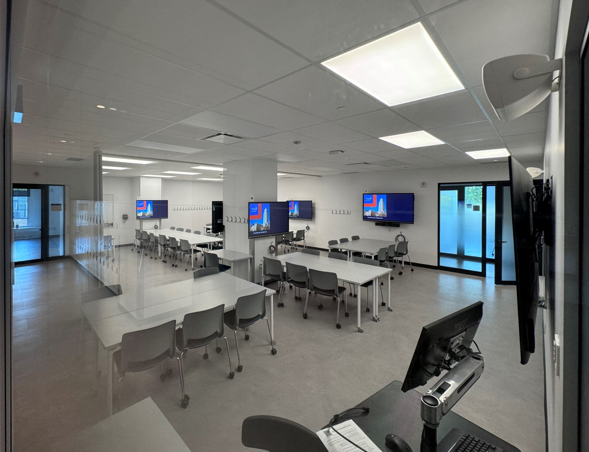 Chaque année, la Faculté de médecine accueille un grand nombre d’étudiants et au cours des dernières années (entre 2018 et 2024), le nombre d’admissions a bondi de 40 %, passant de 250 étudiants à 350 étudiants par cohorte. Cette hausse a nécessité l’agrandissement des installations d’enseignement. Située maintenant dans un nouveau pavillon, au 888, rue de Maisonneuve à Montréal, l’école de médecine possède des installations à la fine pointe de la technologie pour répondre à l’évolution des méthodes pédagogiques. Ainsi, pour tenir compte des besoins du nouveau programme pédagogique en médecine (1er cycle), l’équipe de conception en technologie AV et multimédia des TI, en collaboration avec l’équipe réseau des TI et l’équipe de la Direction des immeubles, a planifié, conçu et mis en place tout l’équipement audiovisuel dans les nouvelles salles modernes; écrans, moniteurs interactifs avec stylet, stations de collaboration maître (Wolfvision), tableaux blancs interactifs, ordinateurs et captation. Ce sont 38 salles bien équipées qui bénéficient aux cohortes. En plus, deux auditoriums de 194 places ont été équipés d’un système audiovisuel complet; projections HD laser format 16:10, moniteurs télé pour la rediffusion, micros sans fil, tuiles microphones et caméras, système de sonorisation stéréo et haut-parleurs, panneaux de contrôle, éclairage et rideaux automatisés et contrôles à distance de l’ensemble du système. Ceux-ci sont également équipés d’une régie qui est opérée par un technicien en audiovisuel des TI de l’UdeM, et pour améliorer l’expérience d’apprentissage, d’une technologie permettant des cours bimodaux entre les différents campus UdeM. Toute cette nouvelle configuration a transformé considérablement l’environnement de formation autant pour la communauté étudiante que pour le personnel enseignant.